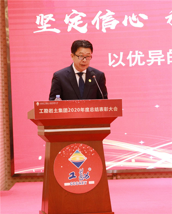 會(huì)上,工勘巖土集團(tuán)總經(jīng)理李紅波作了題為《繼往開來·傳承創(chuàng)新·奮力開創(chuàng)工勘高質(zhì)量發(fā)展新征程》的工作報(bào)告,全面總結(jié)回顧了集團(tuán)在經(jīng)營(yíng)管理、產(chǎn)業(yè)升級(jí)、科技創(chuàng)新、人才培養(yǎng)、品牌建設(shè)等方面取得的新進(jìn)展和新突破?;赝?020,全體員工攻堅(jiān)克難、碩果累累:經(jīng)營(yíng)業(yè)績(jī)創(chuàng)下歷史新高、科技創(chuàng)新取得重大成果、產(chǎn)業(yè)升級(jí)成效顯著、高端人才資源加快集聚、品牌建設(shè)釋放全新活力、“343”十年計(jì)劃圓滿收官……展望2021,初心如磐、使命在肩,我們要堅(jiān)持穩(wěn)中求進(jìn)總基調(diào),以推動(dòng)高質(zhì)量發(fā)展為主題,全面加強(qiáng)市場(chǎng)經(jīng)營(yíng),強(qiáng)化體系建設(shè),落實(shí)精細(xì)管控和提質(zhì)提效;要強(qiáng)化科技創(chuàng)新,加快信息化融合,持續(xù)鍛長(zhǎng)板、補(bǔ)短板、育新板,著力穩(wěn)增長(zhǎng)、提質(zhì)量、防風(fēng)險(xiǎn),確保2021年工作開好局、起好步,以優(yōu)異的成績(jī)迎接工勘集團(tuán)成立三十周年,向中國(guó)共產(chǎn)黨的百年華誕獻(xiàn)禮!