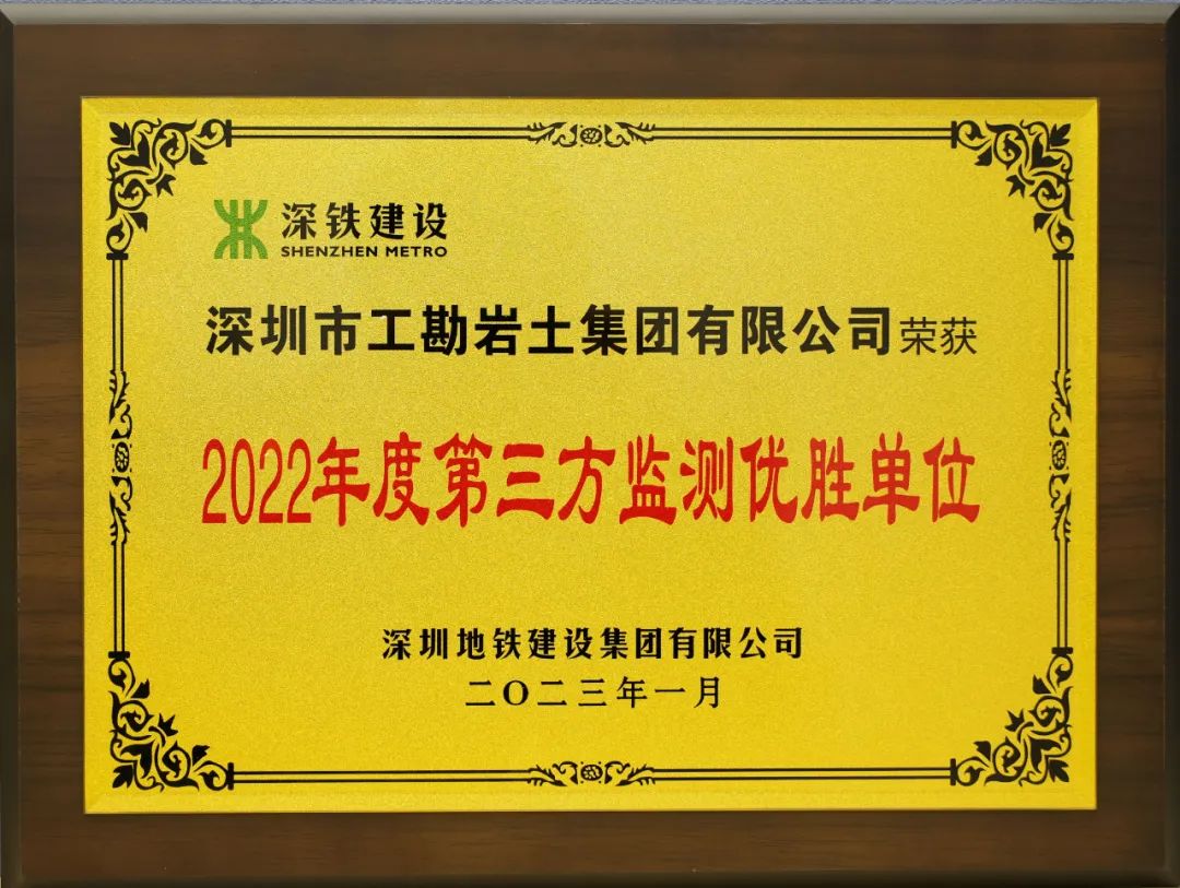 近日,深圳地鐵建設集團有限公司公布了《關于建設工程施工總承包合同單位、第三方監(jiān)測及控制測量單位2022年度考核的通報》,工勘集團以年度考核排名第一的成績獲評為“2022年度第三方監(jiān)測優(yōu)勝單位”。