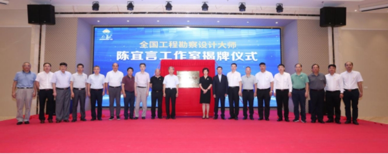 儀式講話后,主持人邀請饒紅蕾主任、王用中大師以及陳宜言大師、林強有董事長等20位領(lǐng)導(dǎo)、嘉賓上臺,為工勘集團“全國工程勘察設(shè)計大師陳宜言工作室”揭牌。儀式結(jié)束后,與會嘉賓還參觀了工勘集團展廳和陳宜言大師工作室。