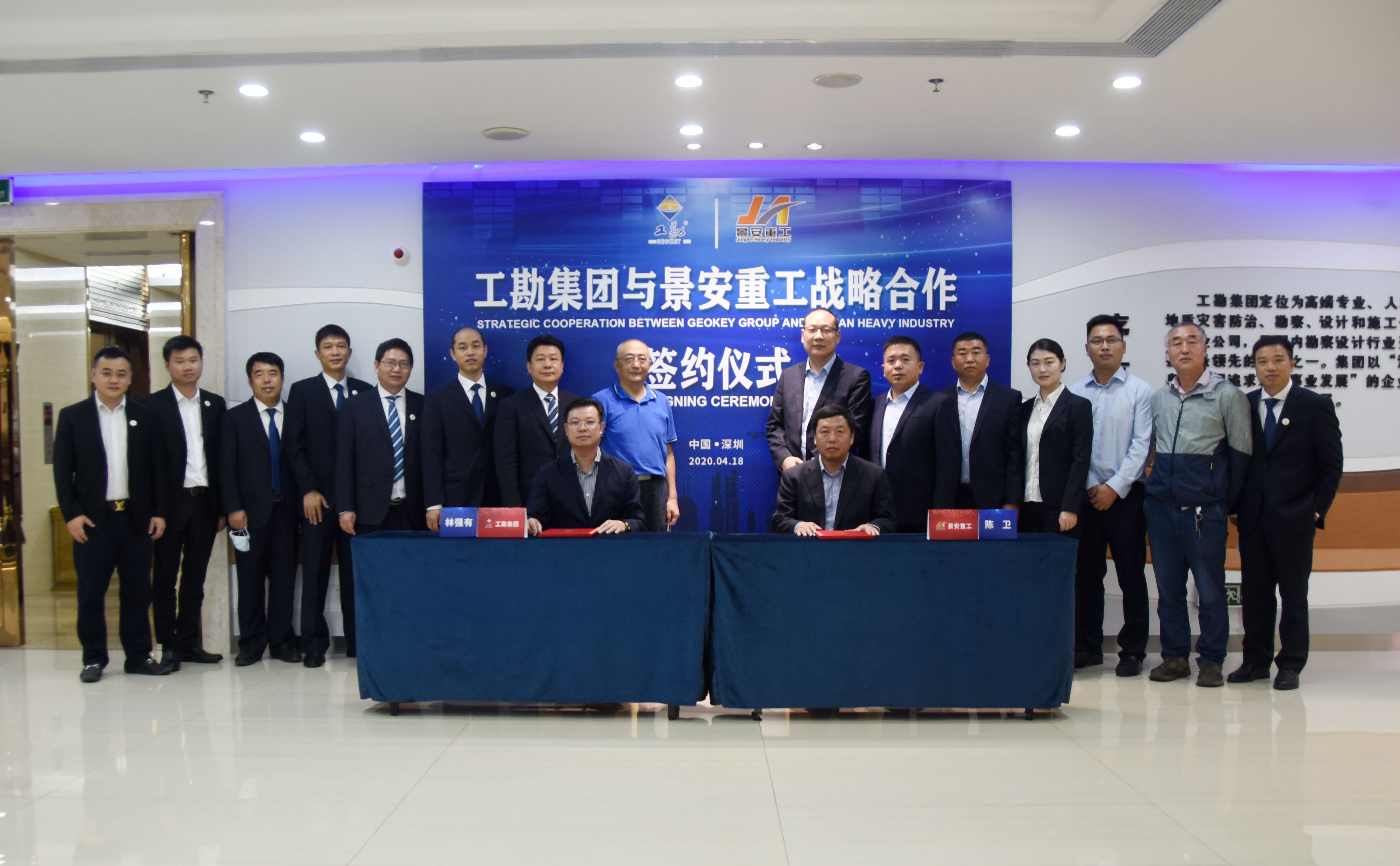 2020年4月18日上午,工勘集團(tuán)與徐州景安重工機(jī)械制造有限公司(以下簡稱景安重工)戰(zhàn)略合作框架協(xié)議簽約儀式在工勘集團(tuán)總部舉行。景安重工董事長陳衛(wèi)、總經(jīng)理魏垂勇、副總經(jīng)理李景峰,工勘集團(tuán)董事長林強(qiáng)有,工勘巖土集團(tuán)副董事長雷斌、總經(jīng)理李紅波、總工程師王賢能、副總經(jīng)理付文光、李新元等雙方領(lǐng)導(dǎo)及相關(guān)部門負(fù)責(zé)人出席了簽約儀式,深圳市土木建筑學(xué)會巖土工程專業(yè)委員會主任劉小敏等嘉賓受邀見證了簽約。